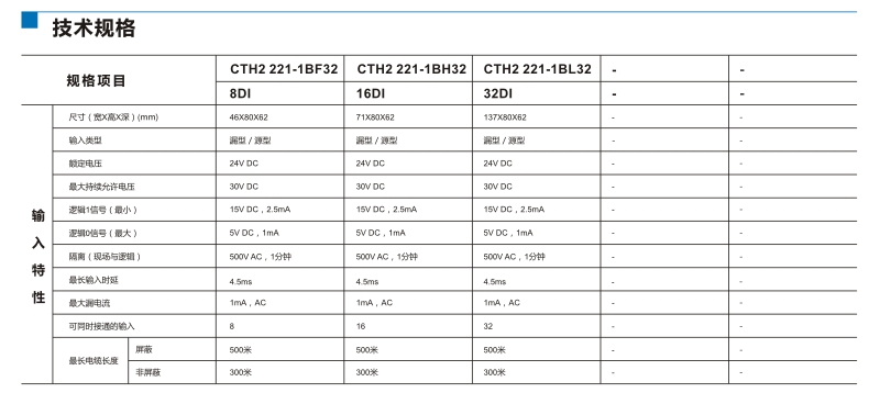 | 數字量輸入模塊, 32點輸入,24VDC | CTH2 221-1BL32 |
