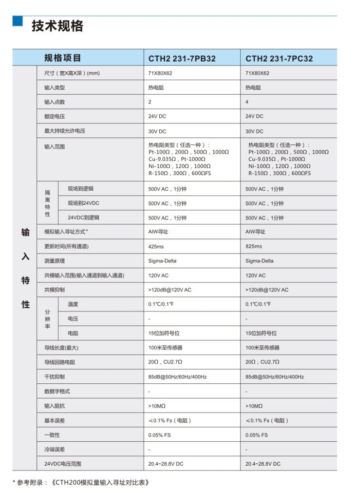 熱電阻溫度輸入模塊,4點(diǎn)RTD,隔離型16位精度CTH2 231-7PC32