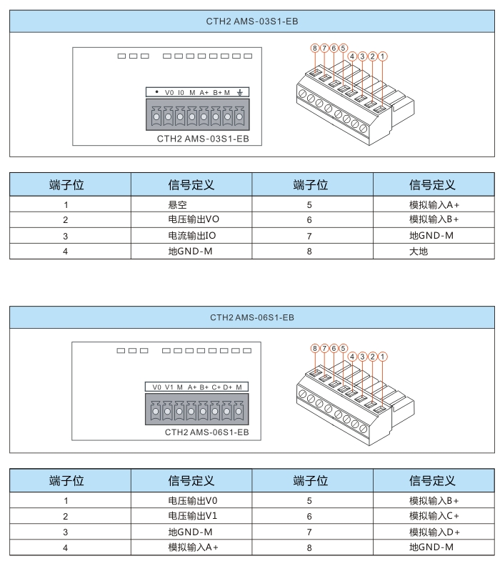 | EBH-AMS: 4點*12位精度電壓輸入,2點*12位精度電壓輸出 | CTH2 AMS-06S1-EB |